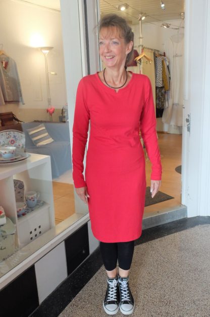 in einem wunderbaren Rot, leicht und luftig, zum Shoppen und Feiern